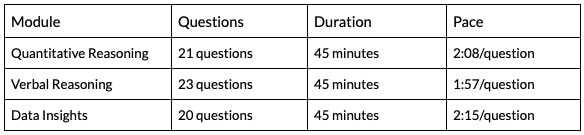 - The Quantitative Reasoning section no longer covers Data Sufficiency (which has moved to Data Insights) or Geometry (no longer tested).
