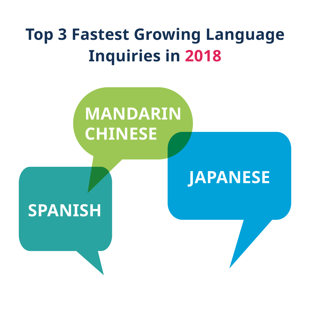 Here at Varsity Tutors, business languages (Spanish, Mandarin Chinese, and Japanese) grew four times faster than European and traditionally academic languages (Latin, French, German, and Italian) over the past year. One in three of non-English language tutoring sessions were completed by adult learners, suggesting some adults are now trying to get ahead in their careers.