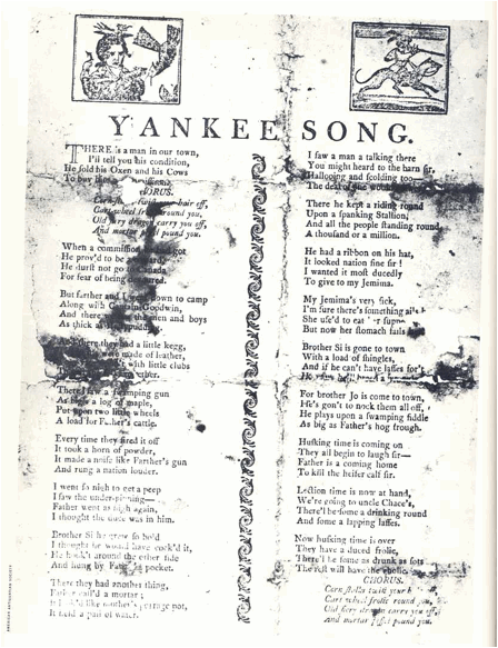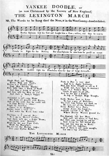 "Yankee Doodle."  The Literature of the United States.  Eds. Walter Blair et al.  Chicago:  Scott, Foresman, 1946.  277-78.