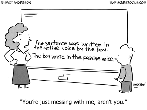 This page illustrates both active and passive voice verbs. Follow links on the left for additional information, including samples of how to change passive to active.